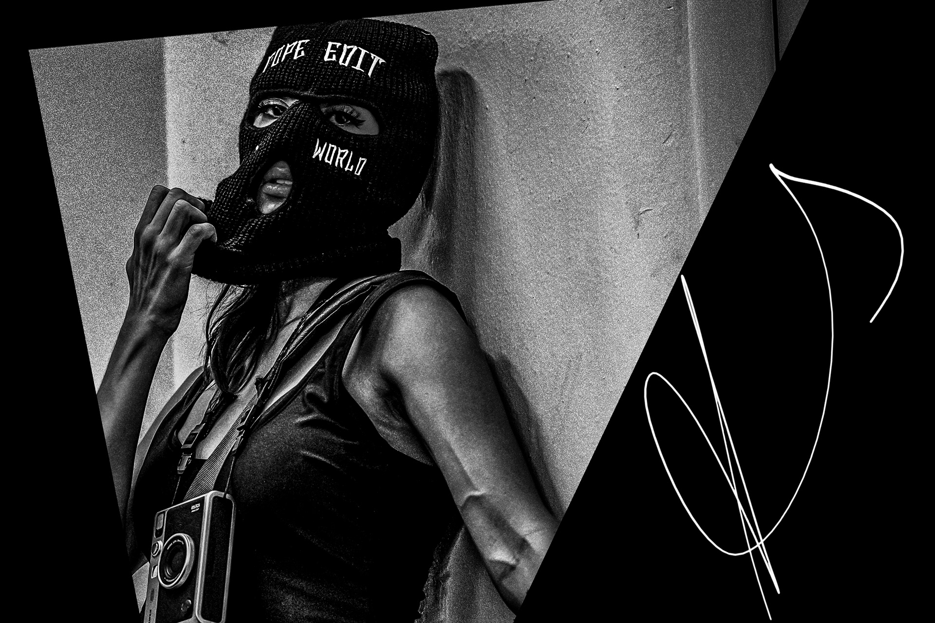 Born as a concept, an idea, a tone, an email signature. I had sent this image to the community center: a random photo I found on Google of a woman in a ski mask.