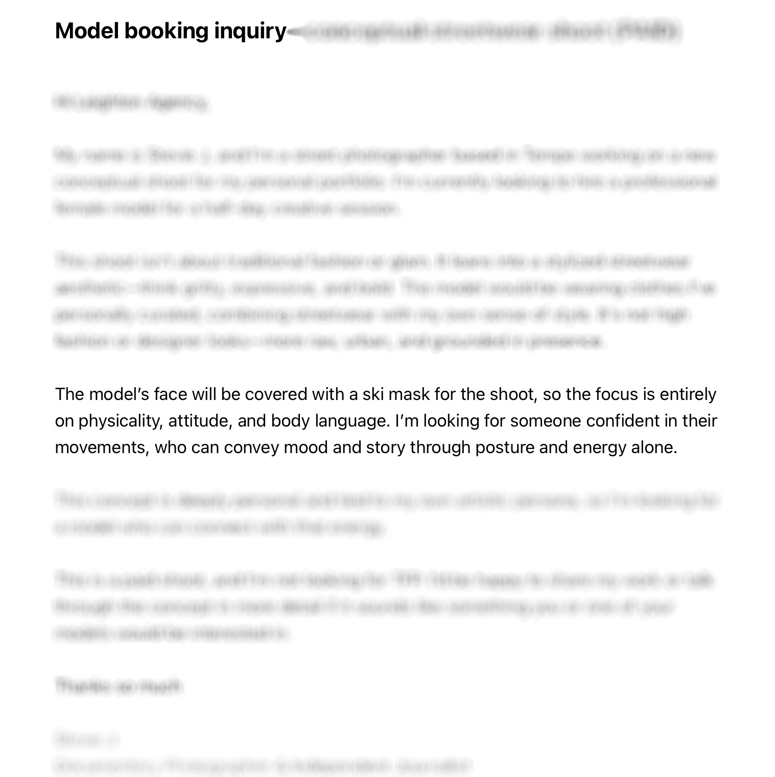 I turned to Craigslist, where I posted open casting calls, filtering for that same energy and look of the image I had ripped from Google.
