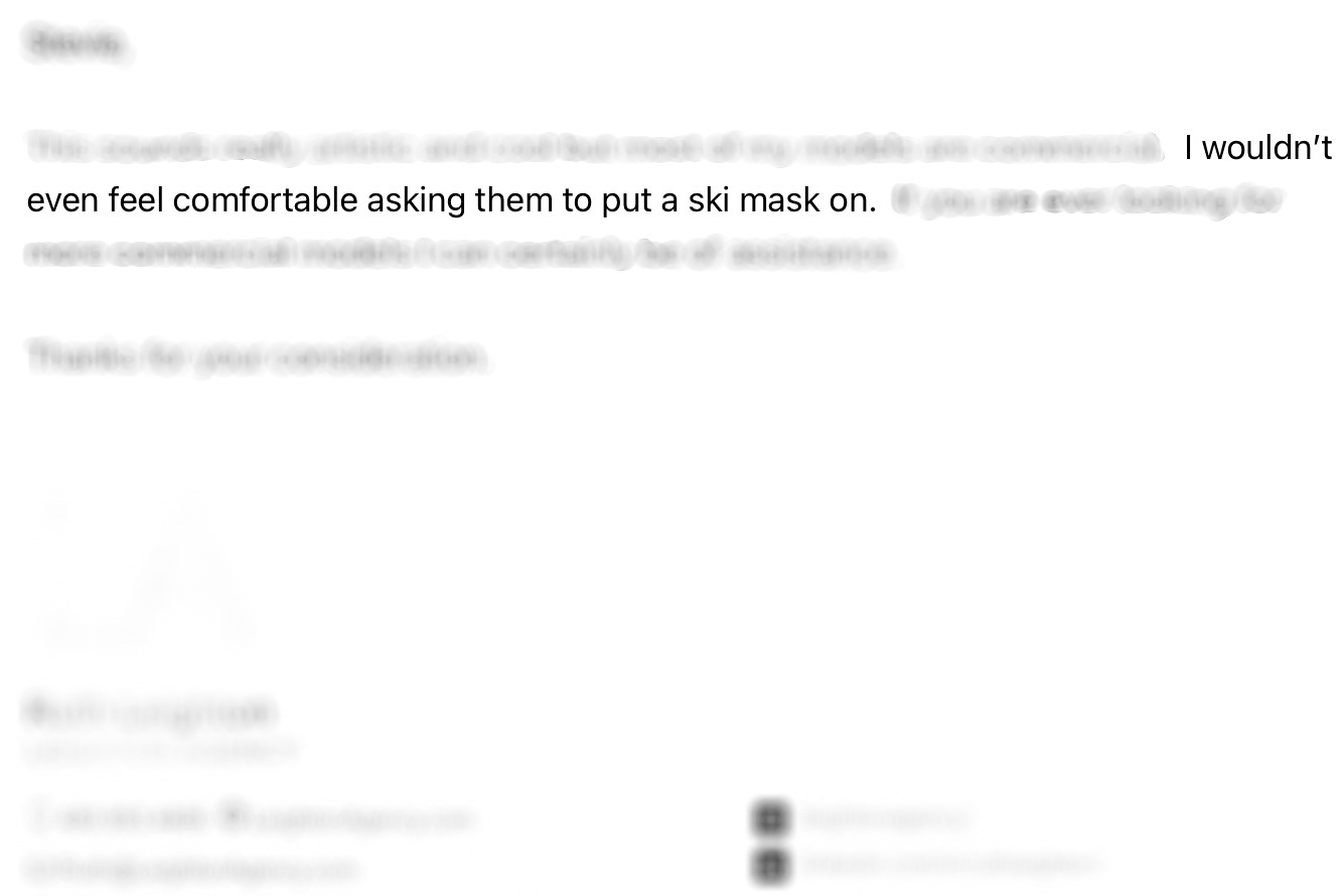 After being rejected by several modeling agencies in Arizona that I had approached with the masked model concept.